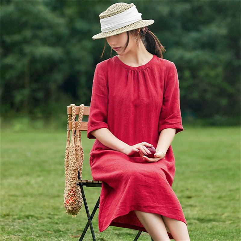红色亚麻长裙相关商品