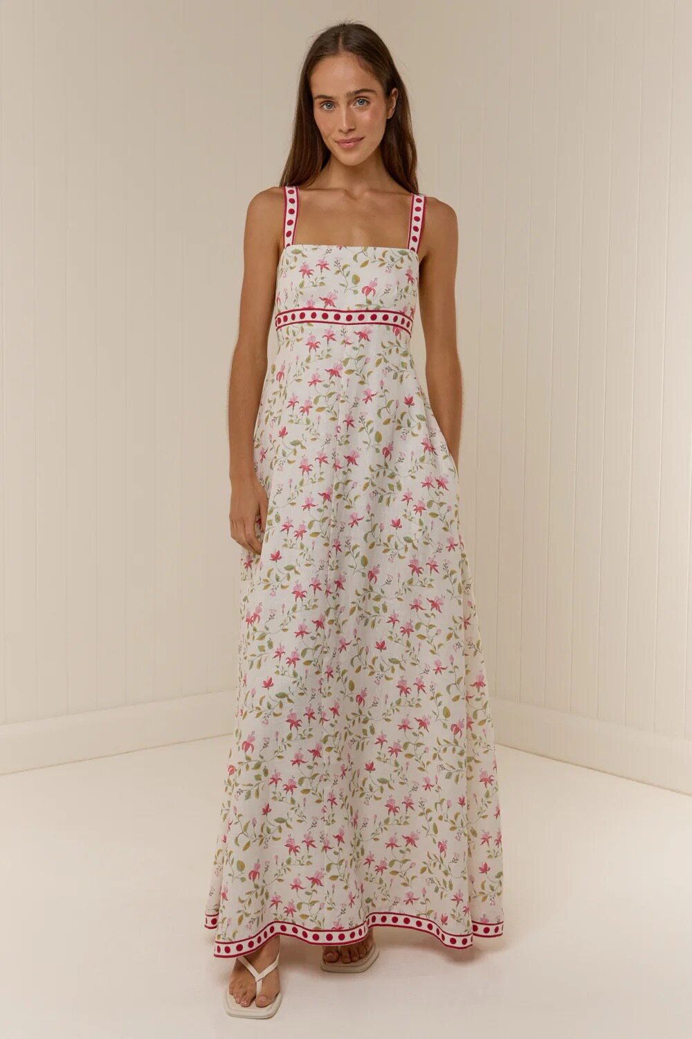 自营bardot芭铎Marabella吊带亚麻混纺长裙-红色 美国奥莱直发