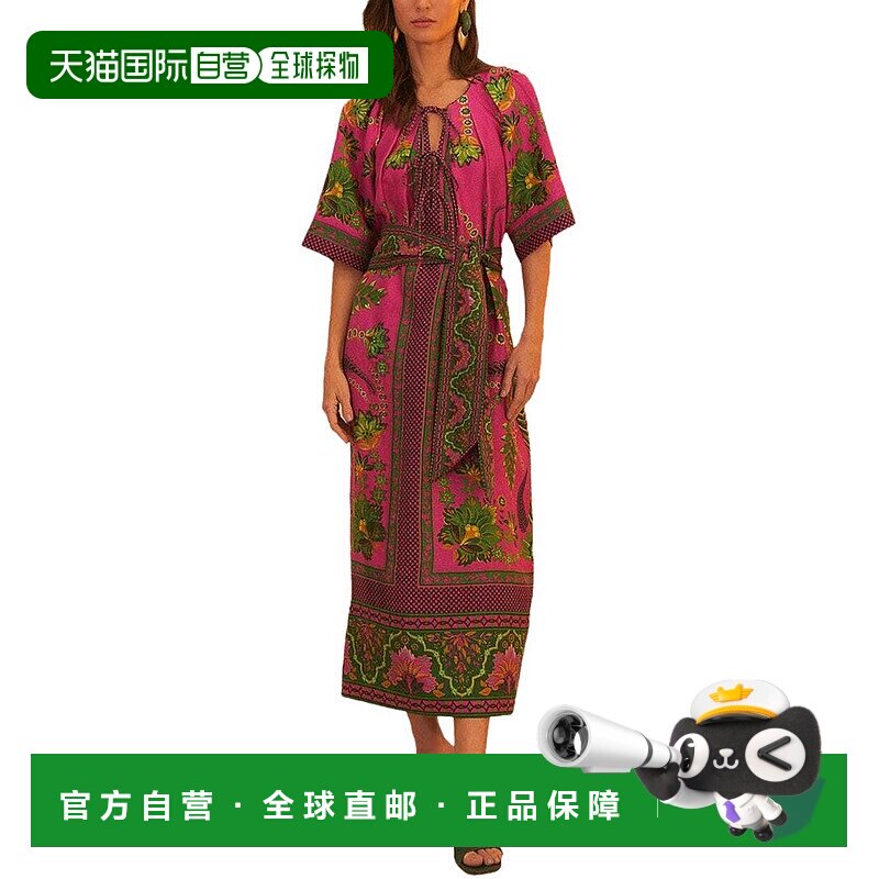 自营farm rio农场里约亚麻长裙-粉红色 美国奥莱直发连衣裙