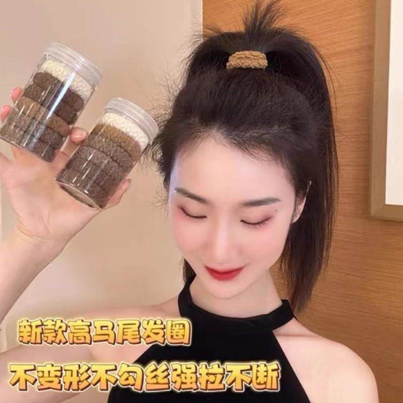 直销新款高弹力耐用奶咖色罐装发圈橡皮筋女扎头发扎高马尾丸子头