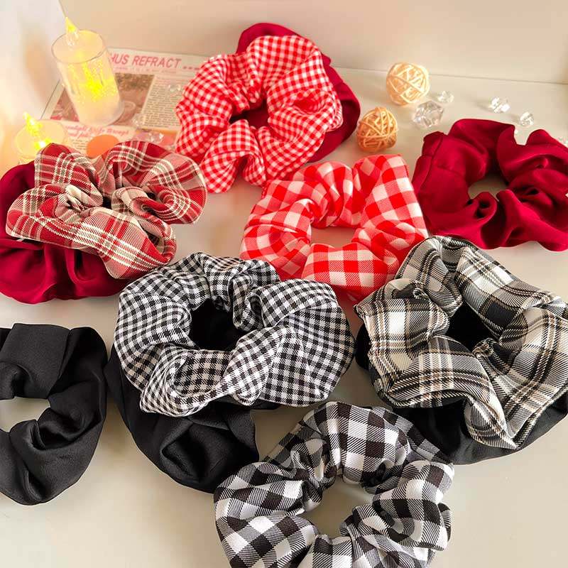 女神弹力格纹大肠发圈氛围头发扎发橡皮筋丸子女高绳耐用头绳发饰