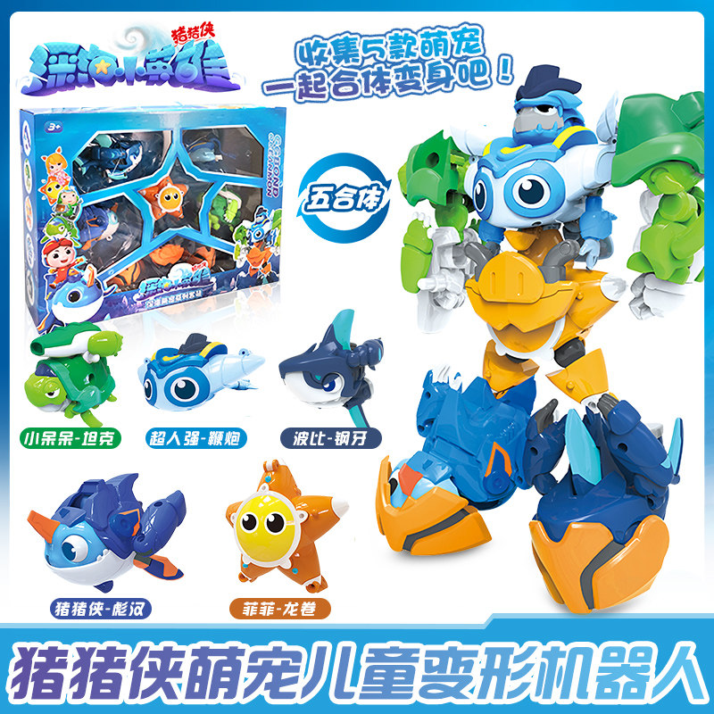 猪猪侠之深海萌宠小英雄海洋动物变形机器人套装合体鲸鲨男孩玩具
