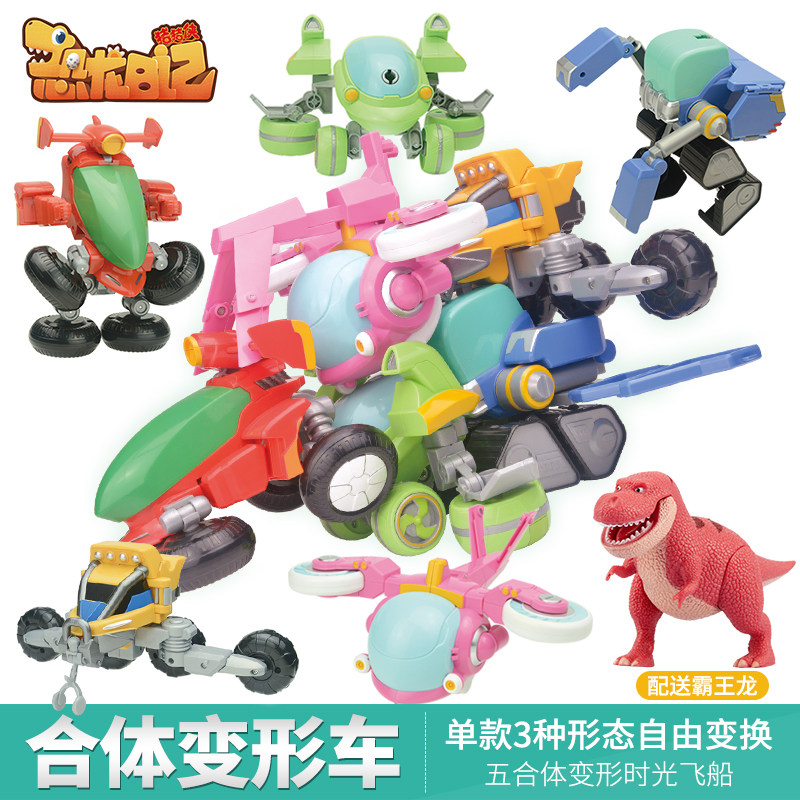猪猪侠玩具之恐龙日记儿童变形机器人男孩合体汽车工程车3全套装5