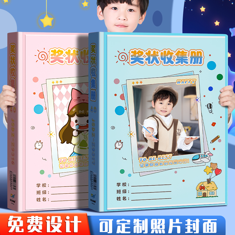 a4奖状收集册男孩女孩可定制照片姓名荣誉证书收纳册整理神器小学生画画收藏夹儿童相册放装奖状的册子收纳袋