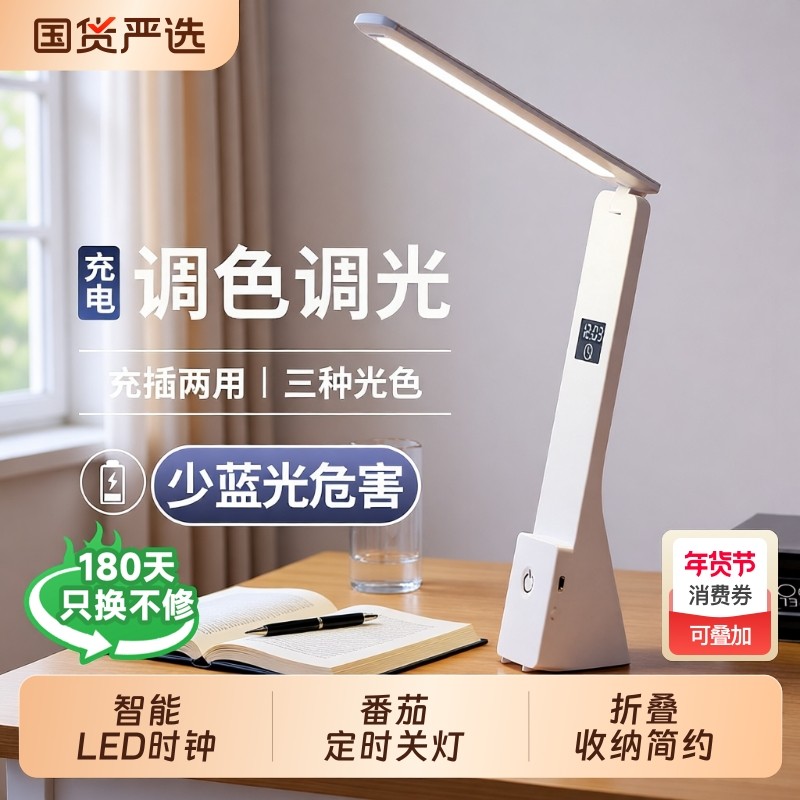 LED可充电式折叠台灯护眼学习台灯三档调光柔和光线大容量锂电池