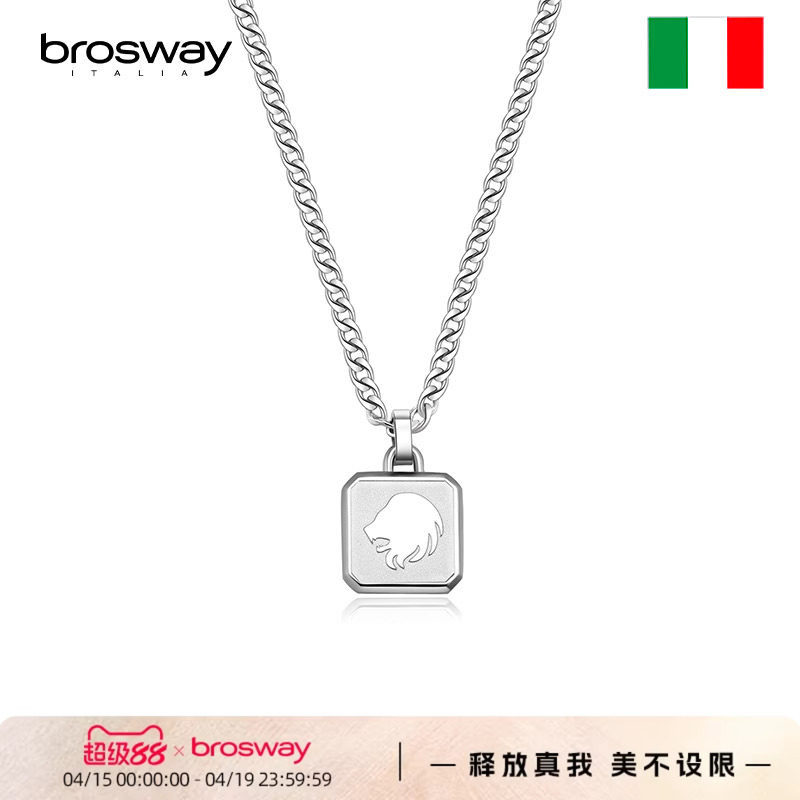 brosway欧美时尚钛钢方牌十二星座项链男士毛衣链送男友礼物吊坠
