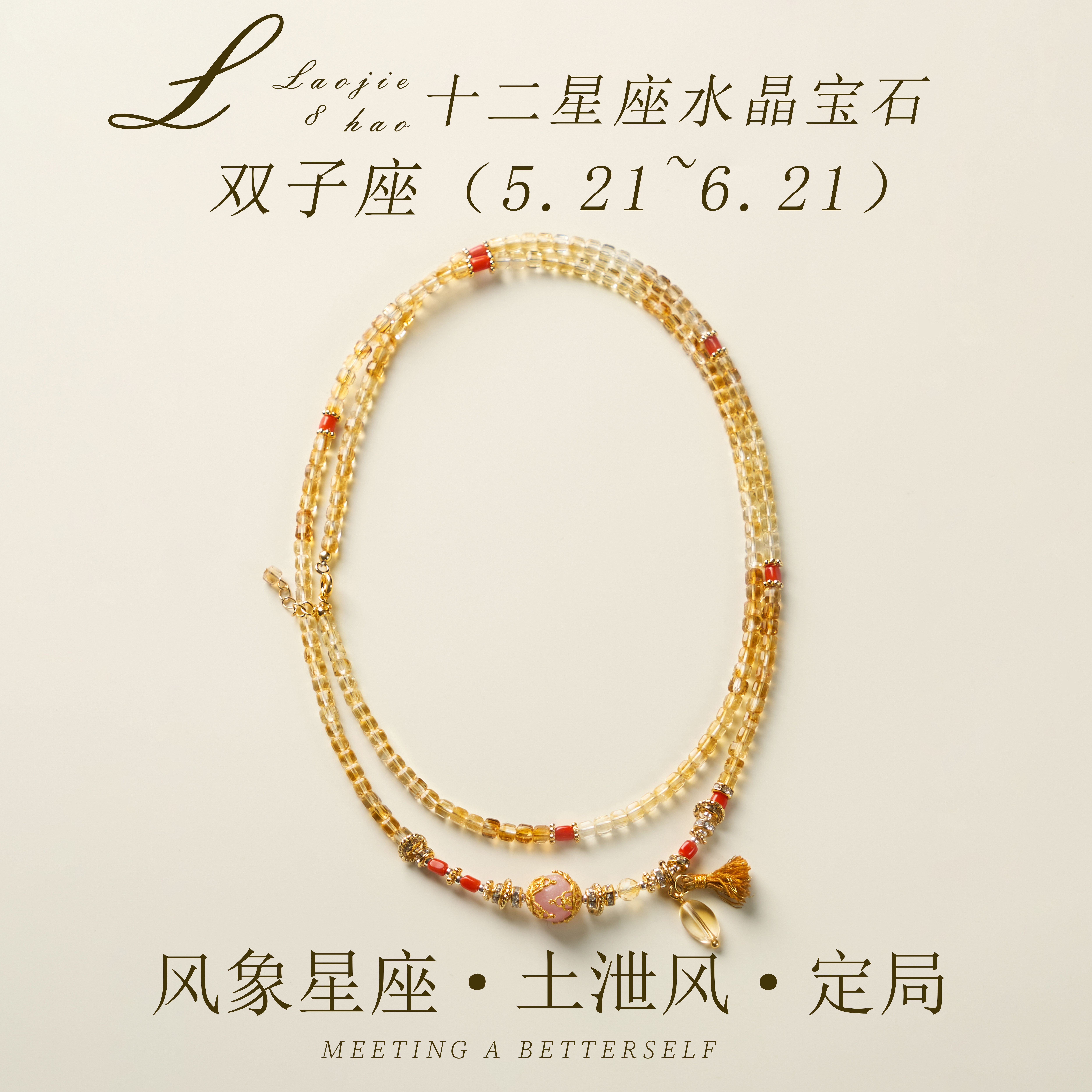 纯银十二星座项链生辰石黄水晶长毛衣链钱币金设计师款幸运石双鱼