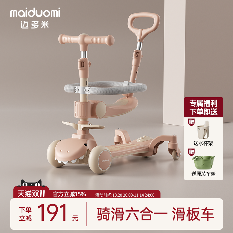 迈多米儿童滑板车六合一1到3岁6岁防侧翻三合一可坐可骑溜娃神器