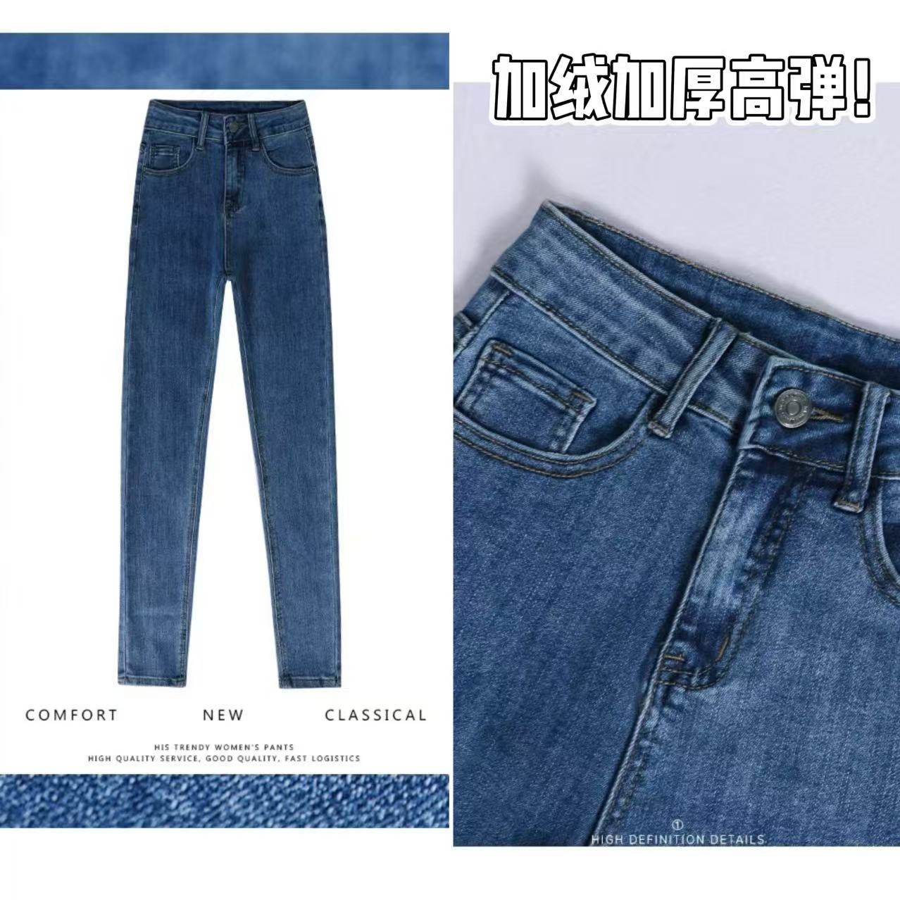01/08Z品牌定制!复古蓝加绒高腰哈伦裤2025款显瘦小脚裤2206