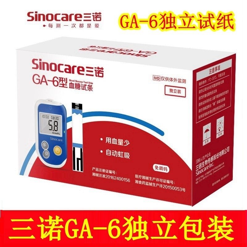 三诺GA-6型血糖测量仪独立包装试纸条语音免调码血糖试片家用包邮