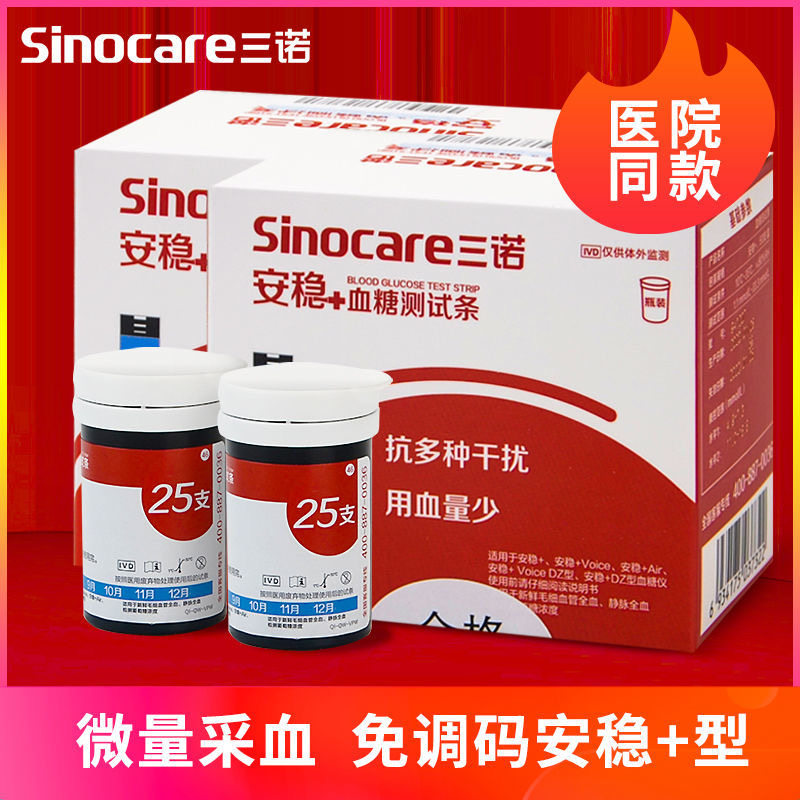 三诺安稳+血糖试纸试条血糖仪器家用免调码血糖测量仪血糖测试条