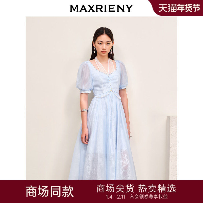 MAXRIENY欧式浪漫公主裙泡泡袖法式复古雪纺连衣裙航海系穿搭