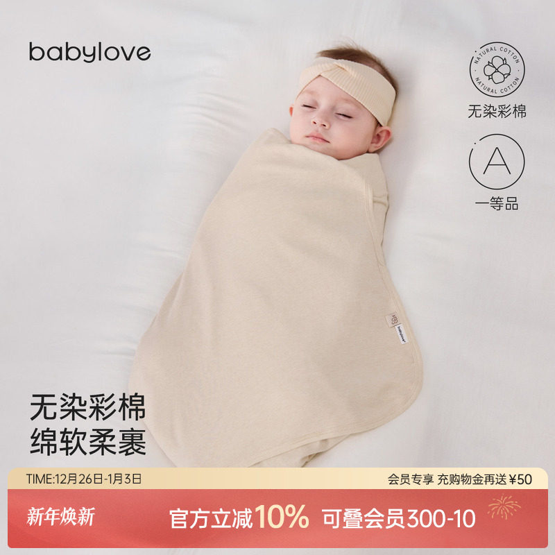 babylove新生儿包巾纯棉春秋宝宝抱毯婴儿防惊跳抱被彩棉待产用品