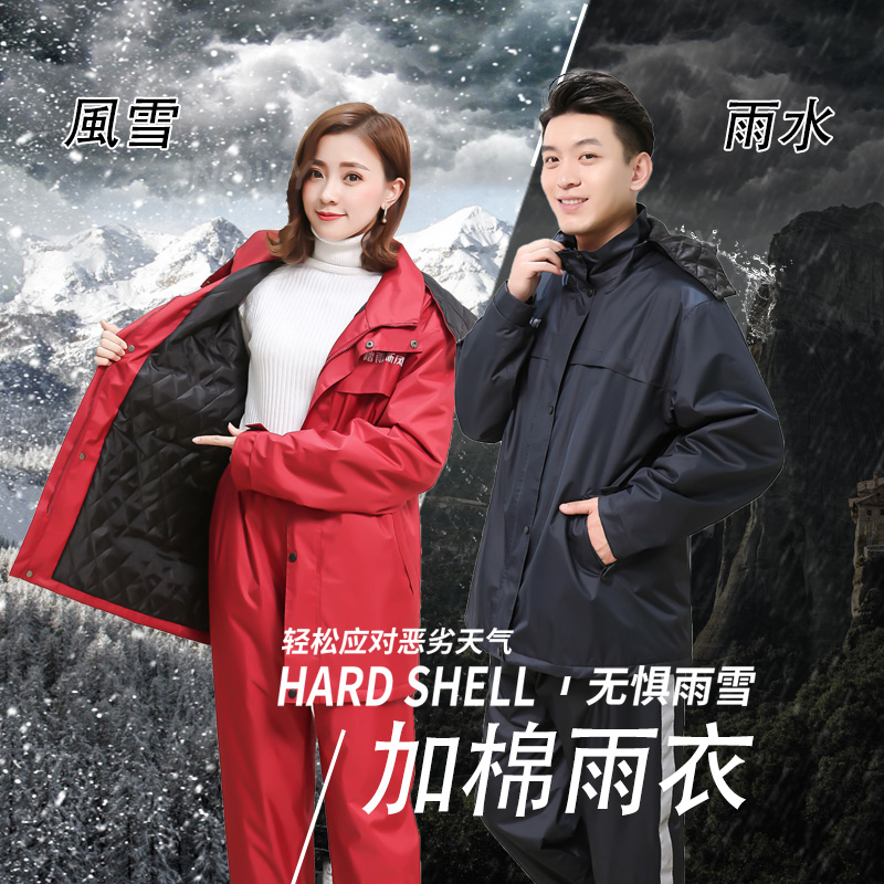 加棉雨衣摩托车男骑行成人雨衣雨裤套装加大加厚冬天冬季保暖防风