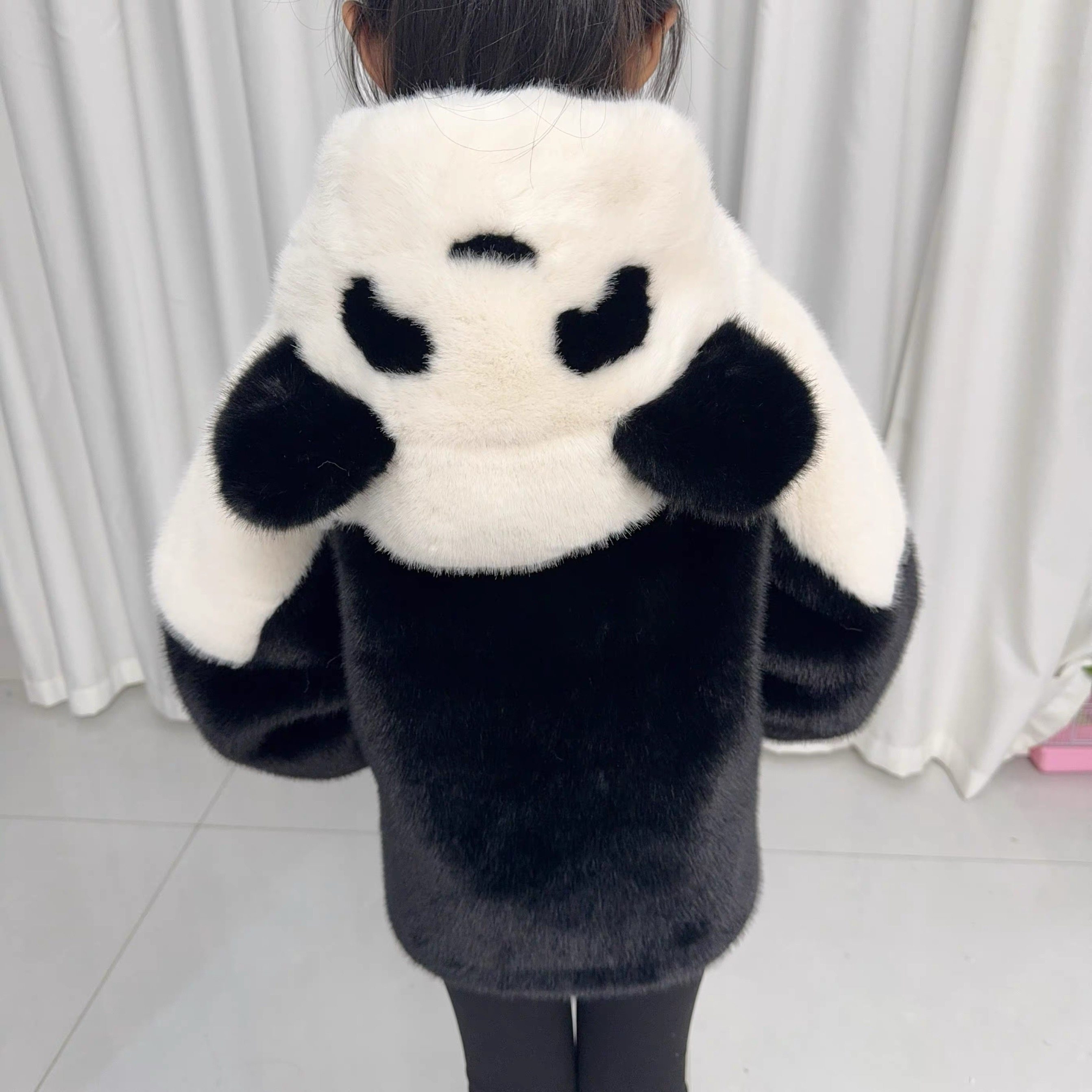 男女童仿水貂毛皮草外套熊猫款可爱儿童保暖加厚皮毛一体毛毛大衣