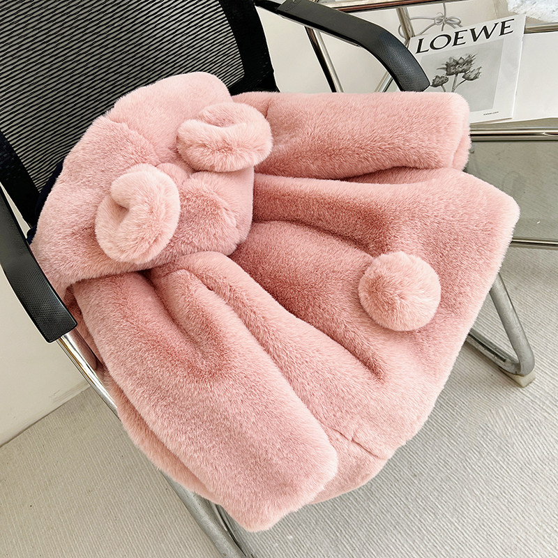儿童仿兔绒皮草毛毛外套女童小熊大衣中长款男童棉服可爱加绒冬季