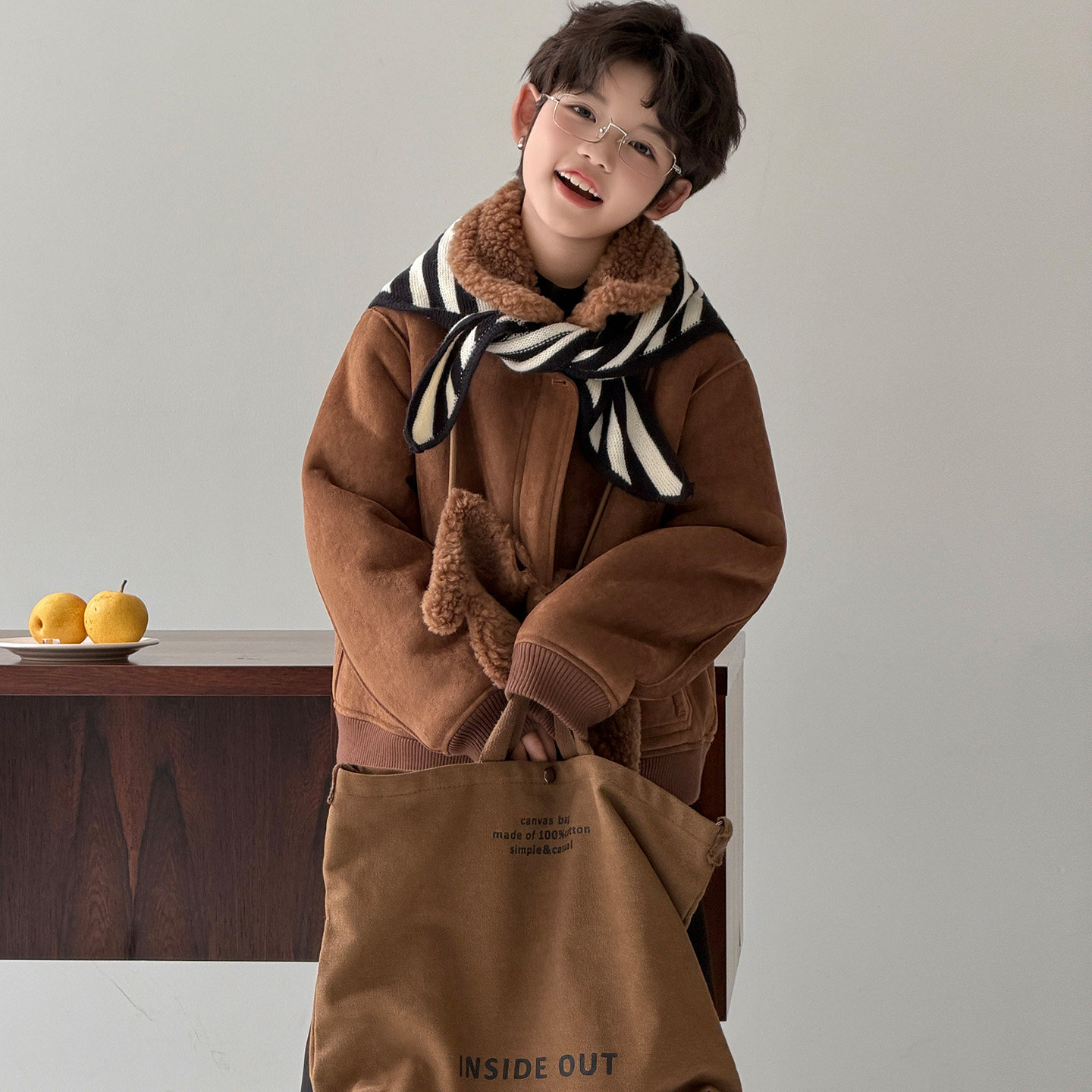 甜苏25冬新款儿童潮童男童外套纯羊毛复合皮毛一体外套可翻可立
