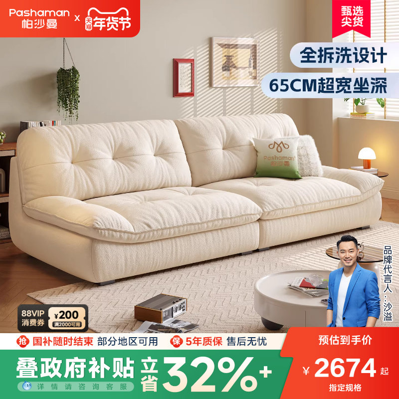 帕沙曼 可拆洗帆船沙发布艺客厅小户型现代简约猫抓布沙发宽坐深
