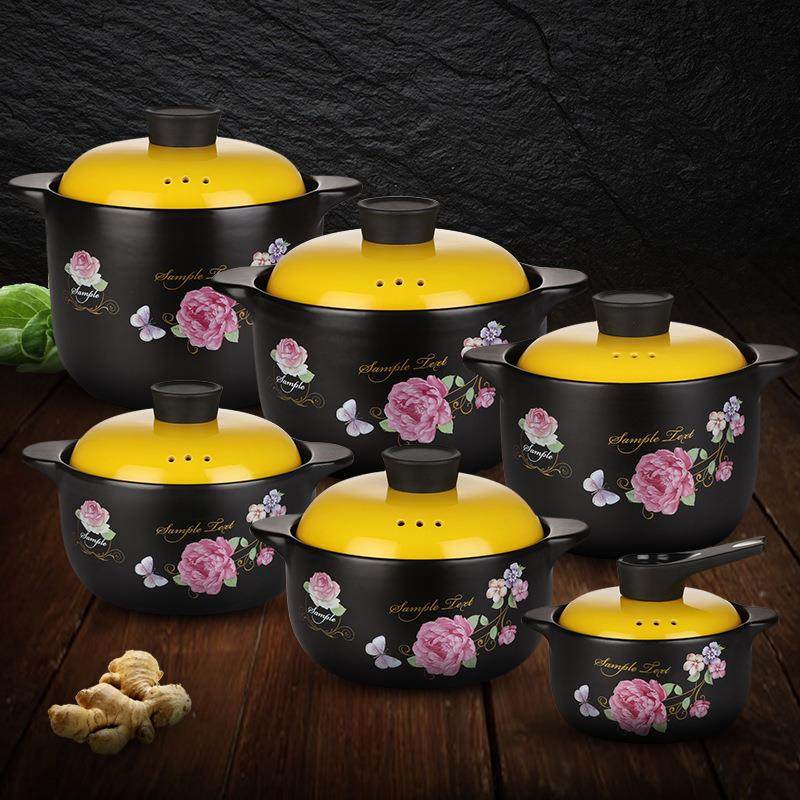 养生砂锅煲汤陶瓷煲耐高温砂锅炖煲韩式印花烫锅明火耐热锅具厨具