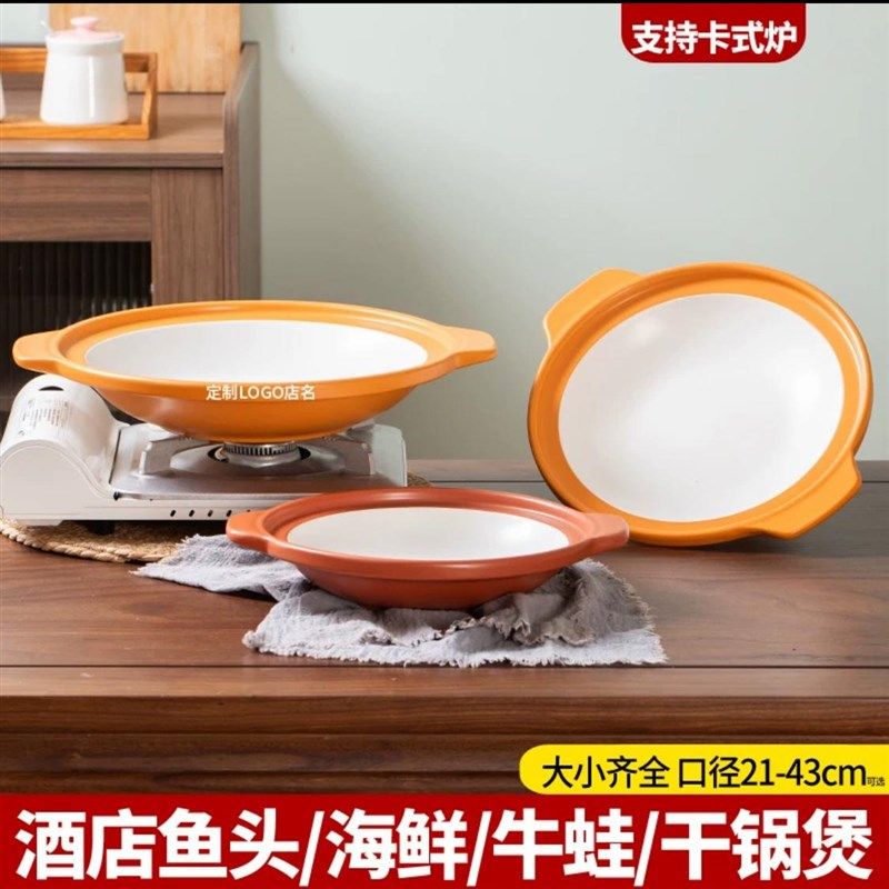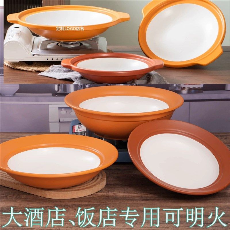 酒店专商家用特浅锅酒精炉明火大容量耐热无耳朵砂锅炖煲沙锅菜品
