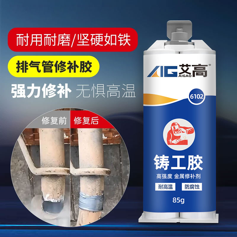 汽车排气管生锈破损补漏胶粘摩托车消音器排气筒补洞修补胶沾挖机堵漏密封胶强力补货车接口裂耐高温电焊胶水