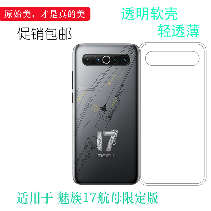 适用于魅族17航母限定版超薄手机壳透明硅胶软壳防滑保护套机盖壳柔韧度防摔大孔合身耐刮水清护镜头后盖透白