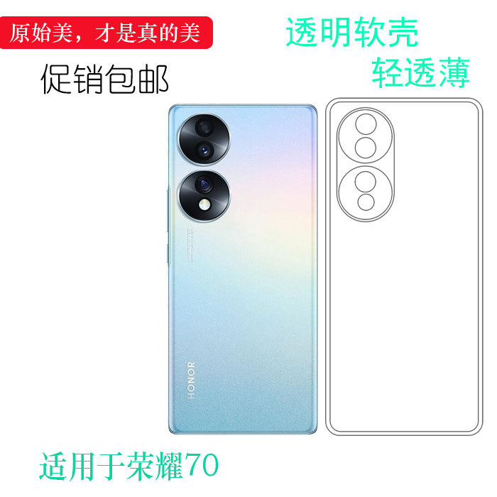 适用于荣耀70超薄手机壳Honor 70 5G硅胶壳包边保护套防滑透明壳大孔塑料软外壳水清护镜头后盖白色清透隐形