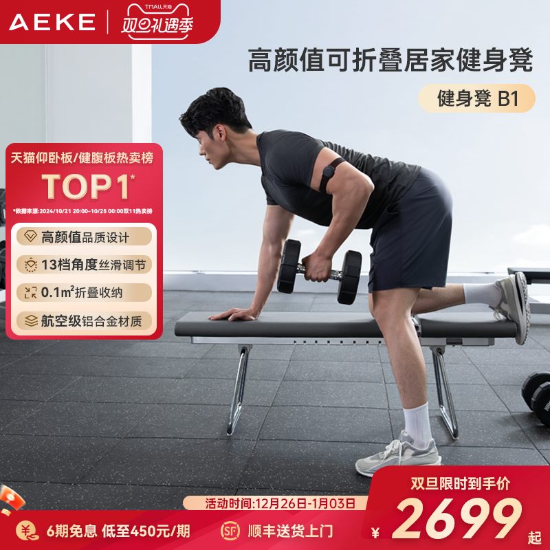 AEKE健身凳多功能哑铃凳家用卧推凳拉筋健腹推肩仰卧板运动折叠椅