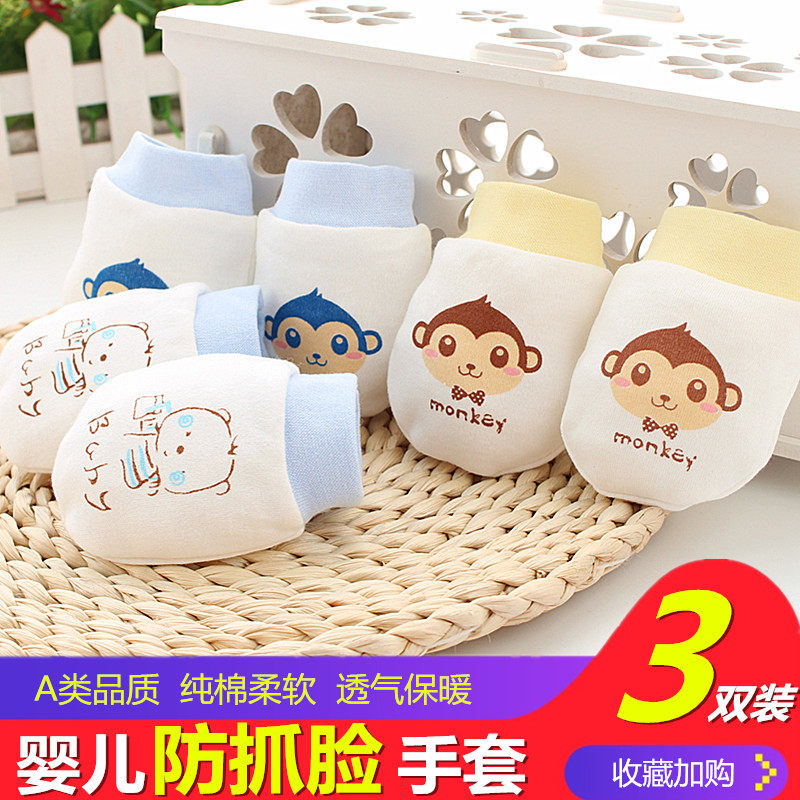 全棉新生婴儿防抓手套春夏秋冬款男女宝宝防抓脸手套纯棉四季通用