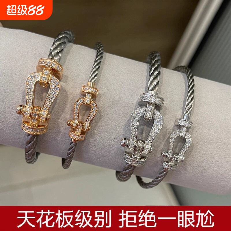 费雷德马蹄扣镶钻精钢丝手链18k 金轻奢情侣款手绳大号男女本命年