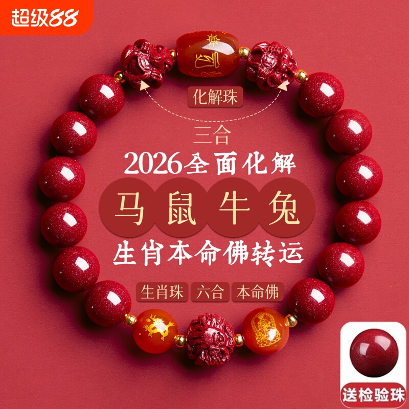 朱砂手串正品官方旗舰店女款男士生肖属马三合六合手链本命年转运