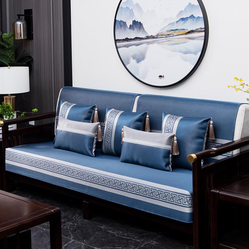 新中式夏季沙发垫冰丝凉席垫红木座垫现代中式实木沙发坐垫套罩巾