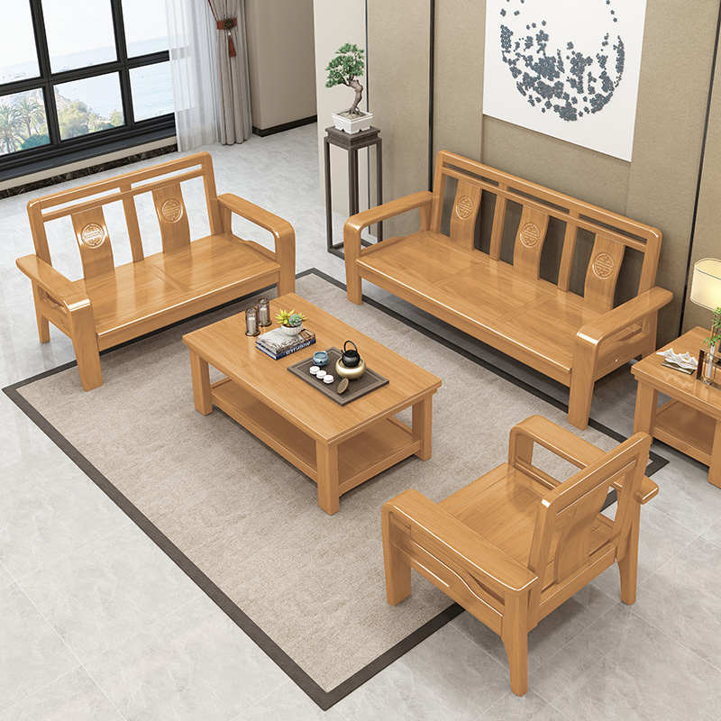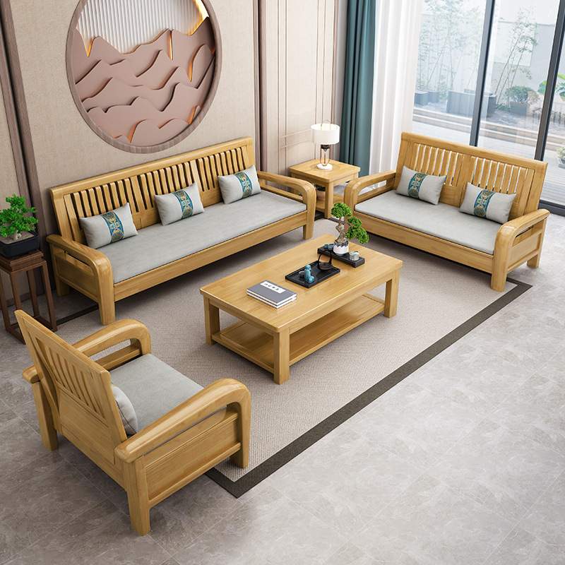 现代中式实木沙发组合1+2+3简约三人位木沙发冬夏两用客厅家具