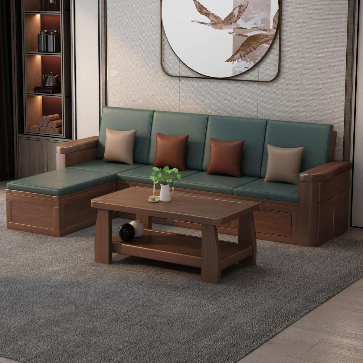 中式胡桃木实木沙发客厅现代简约小户型家用直排储物沙发茶几组合