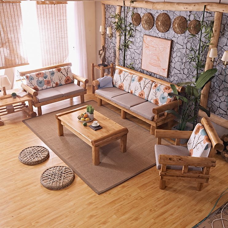现代中式实木沙发单人位双人位三人位组合民宿原生态原木柏木沙发