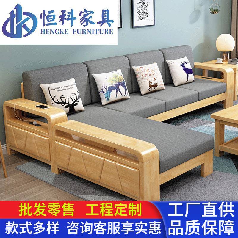 热销现代中式实木沙发客厅小户型原木色简约贵妃冬夏两用农村橡木