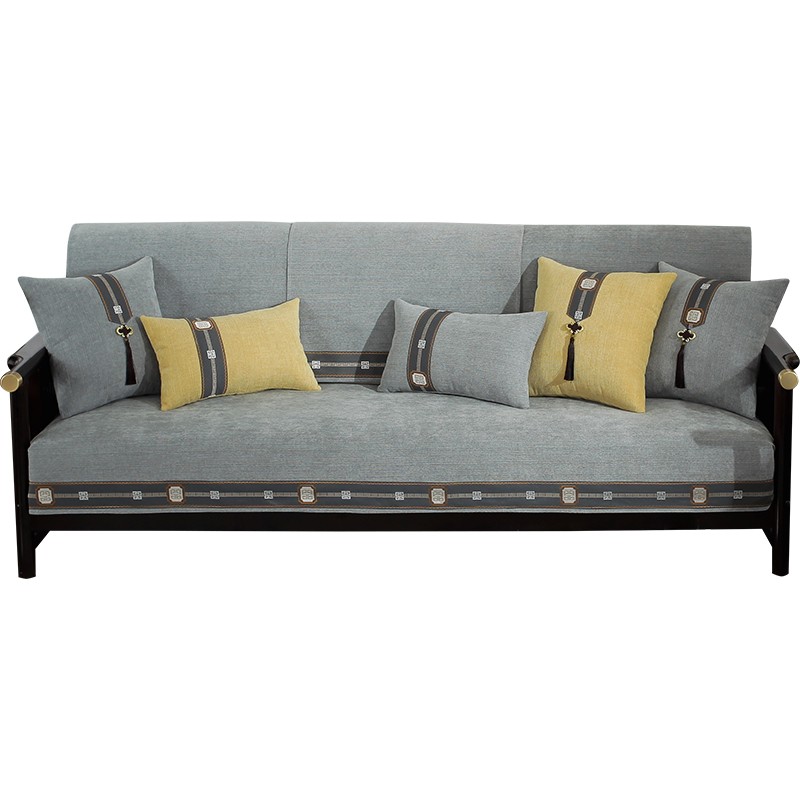 现代中式实木沙发垫四季通用纯色防滑坐垫高档客厅123组合套罩巾