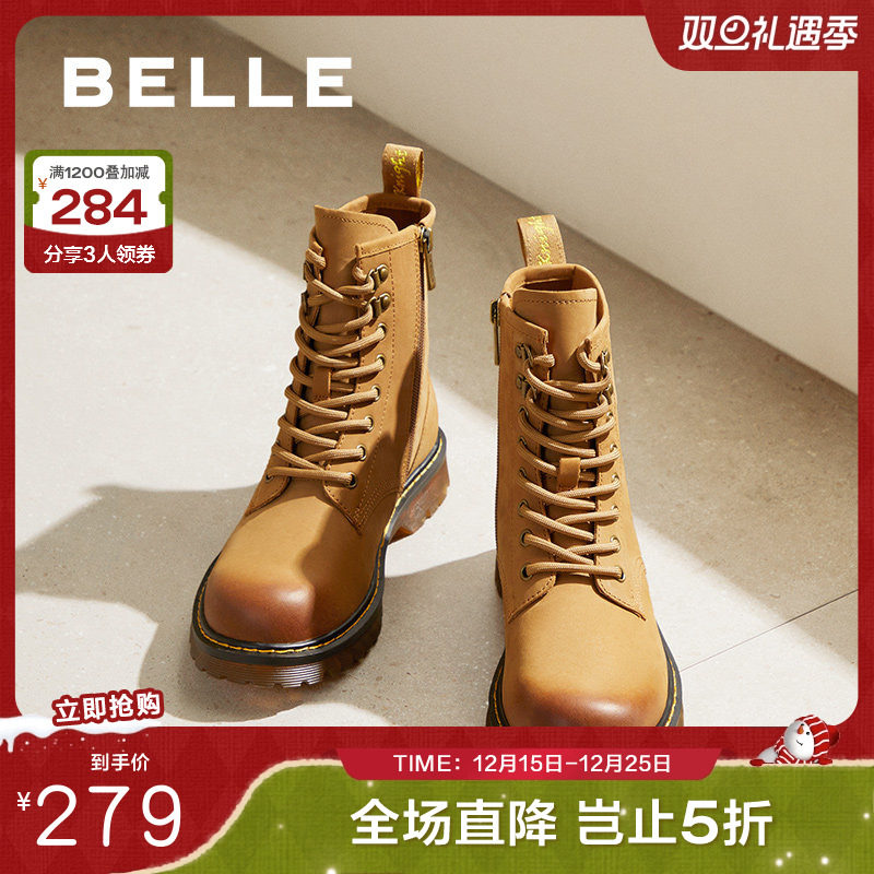 百丽厚底大黄靴女靴子冬季新款户外工装短靴英伦风马丁靴BCX62DZ4