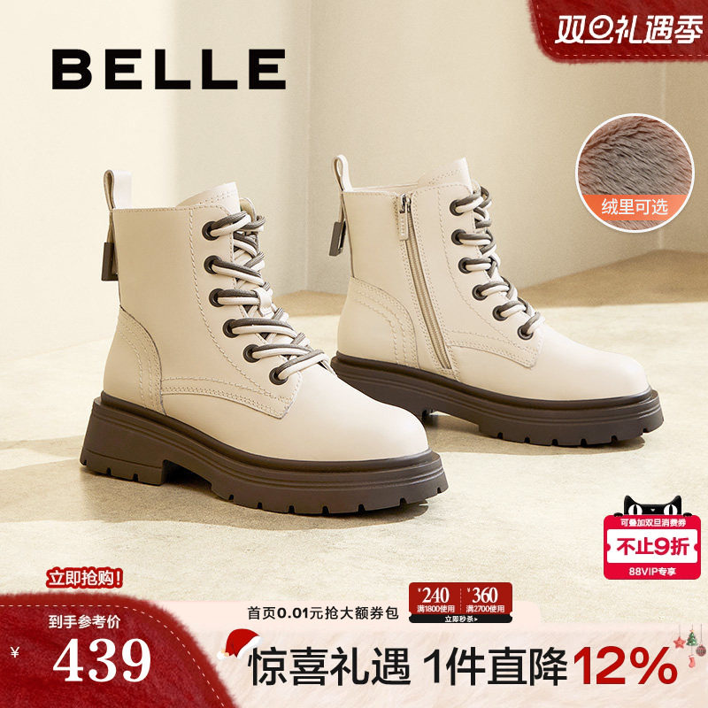 百丽女靴子冬季新款休闲短靴加绒厚底英伦风马丁靴女3NZ40DD4