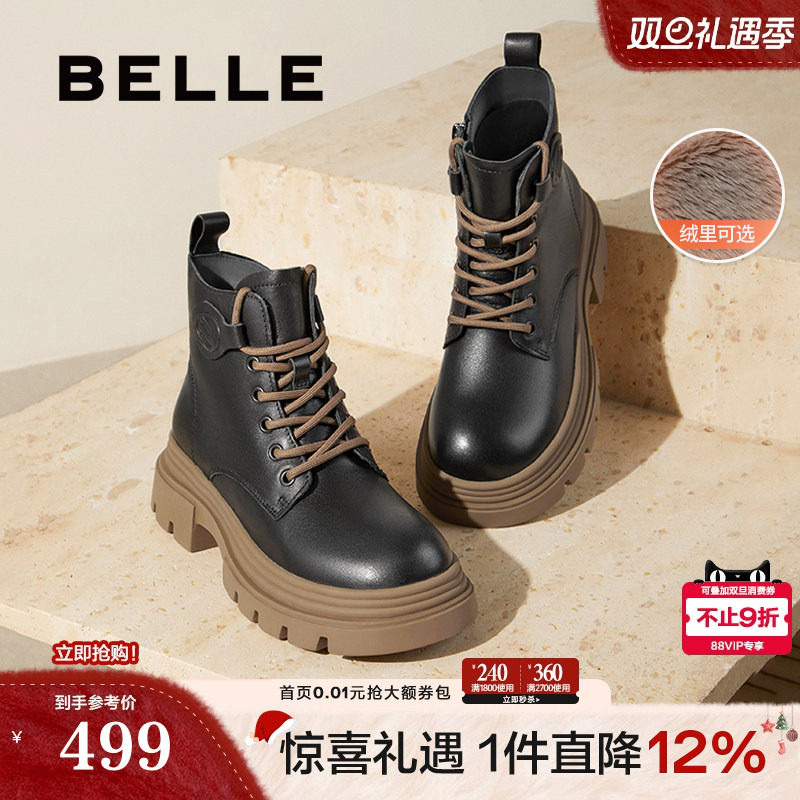 百丽厚底复古英伦风马丁靴女冬季新款工装靴加绒短靴子B9H1DDD4