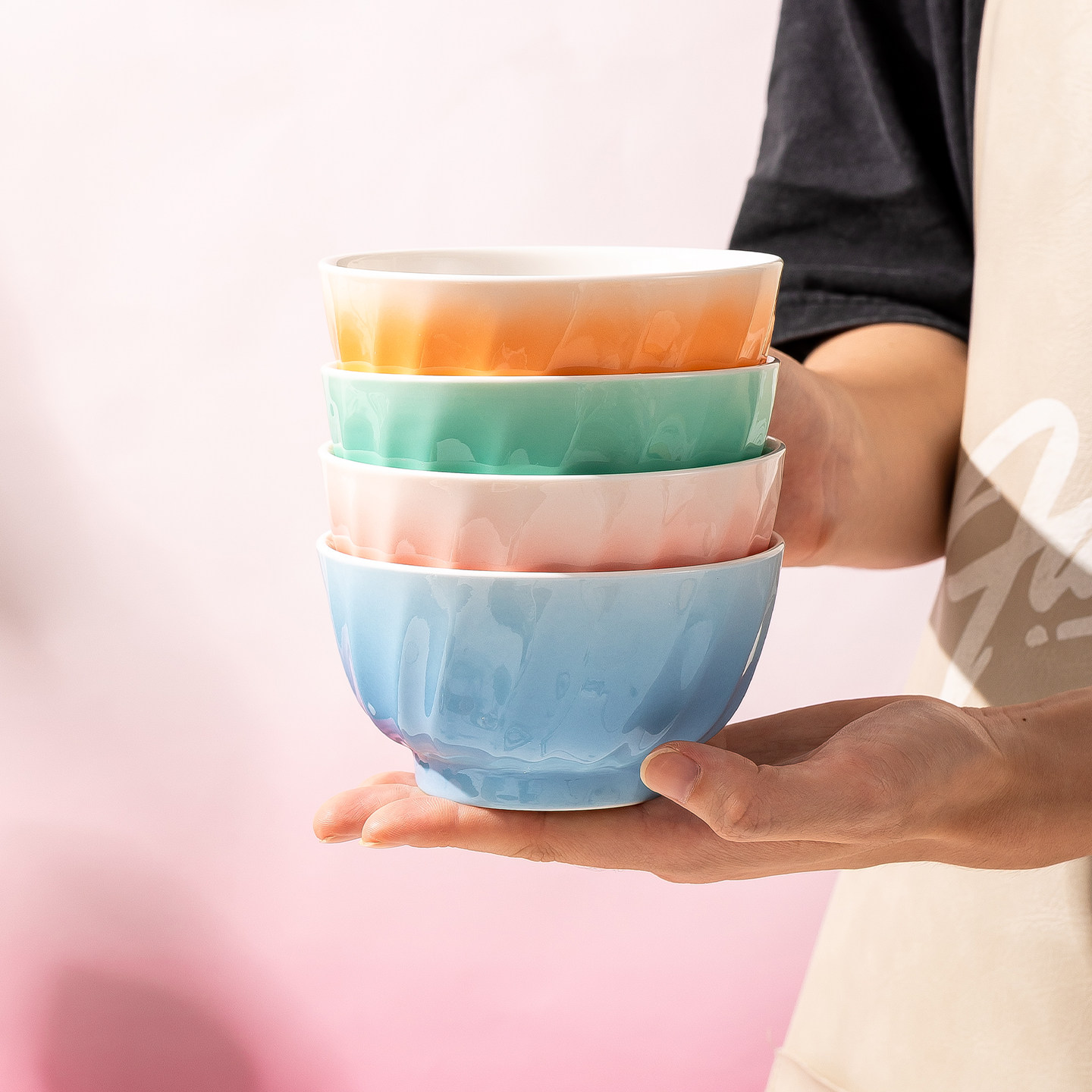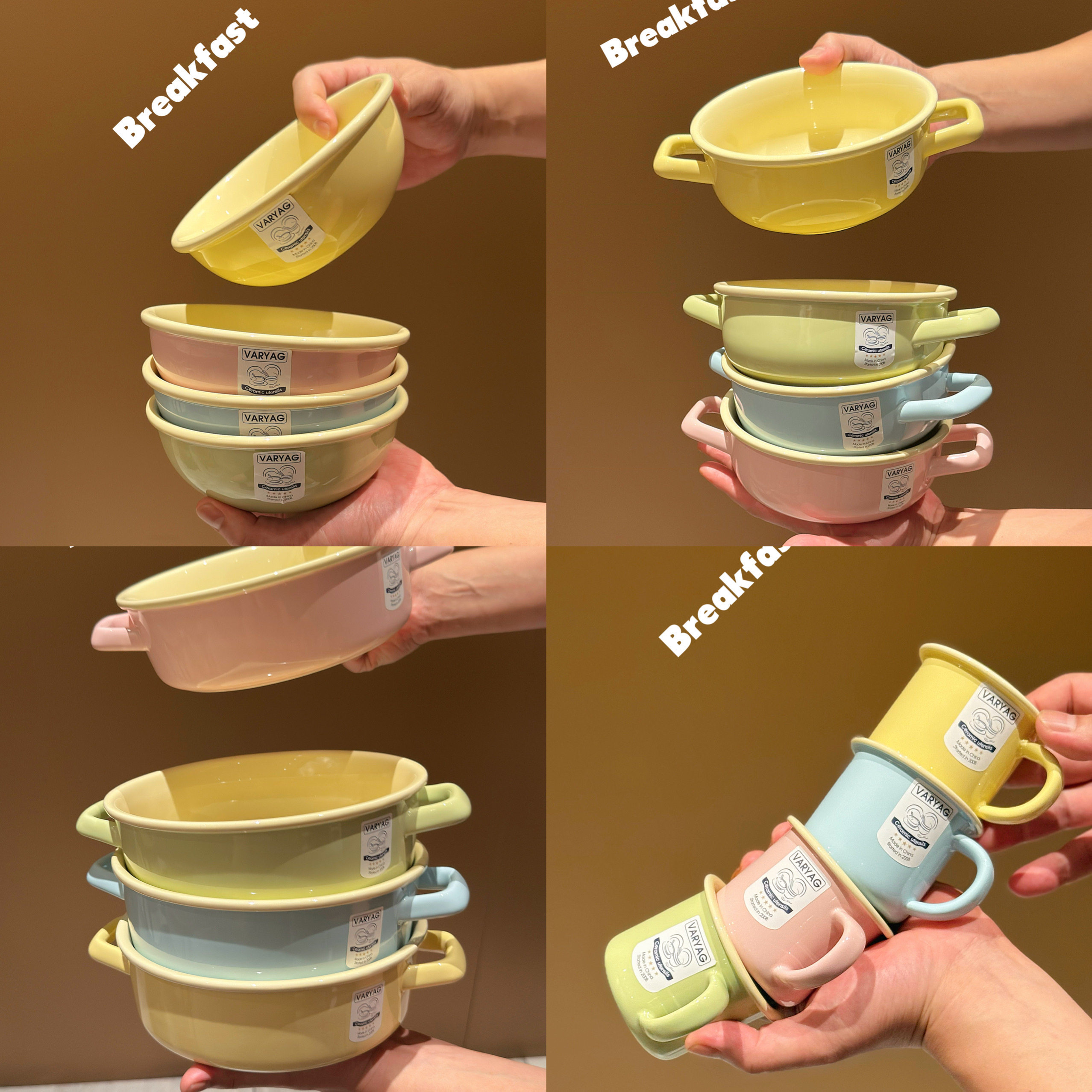 釉下彩早餐碗陶瓷碗糖果色沙拉碗家用汤碗面碗泡面碗水煮大盆双耳