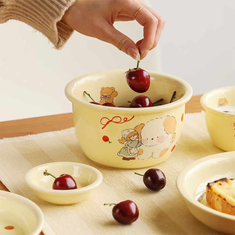 共禾京品ins奶油风幸运熊可爱餐具饭碗家用卡通陶瓷碗盘子双耳碗