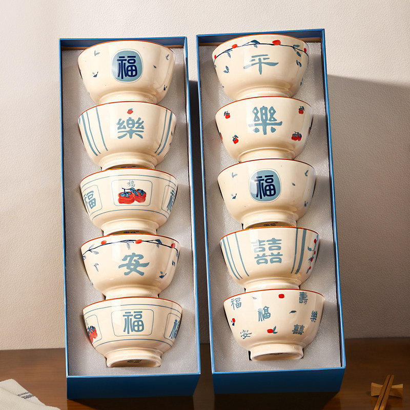 中式福陶瓷米饭碗家用2025新款餐具高颜值个人专用吃饭碗礼盒碗具