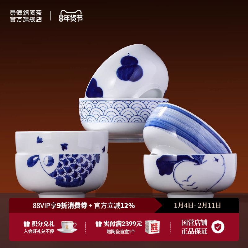 景德镇官方陶瓷青花餐具大容量面碗汤碗家用中式饭碗吃面大碗个人