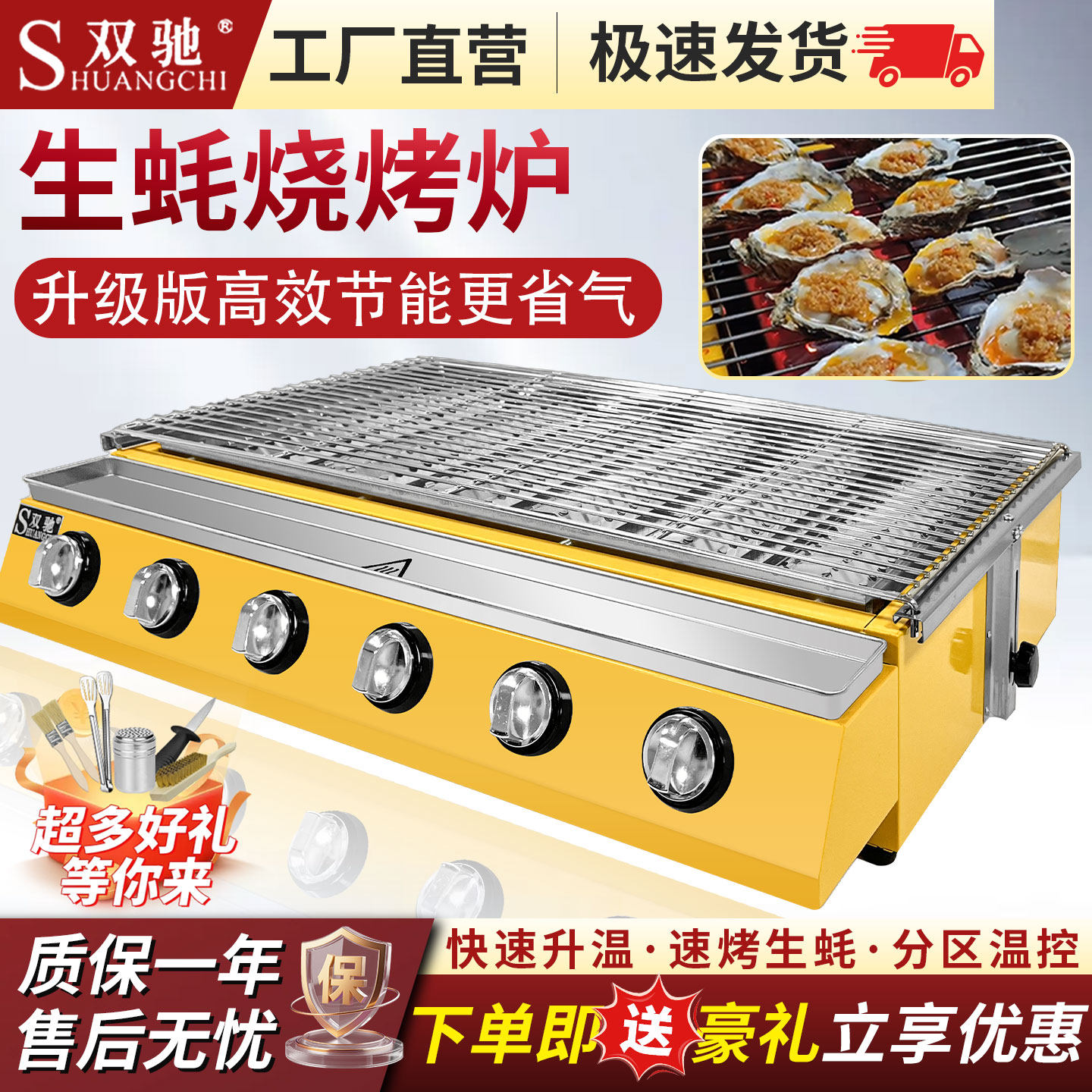 双驰燃气烧烤炉液化气烤生蚝专用炉煤气商用烤梨烤串家用户外摆摊