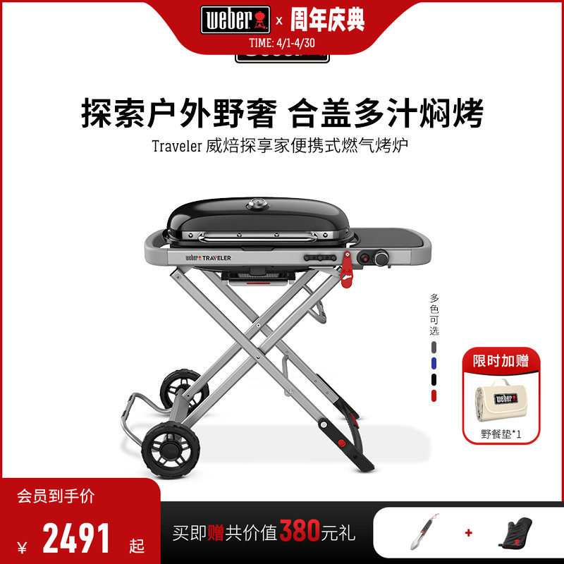 WeberTraveler威焙户外燃气烧烤炉子庭院便携式家用烤肉烧烤架