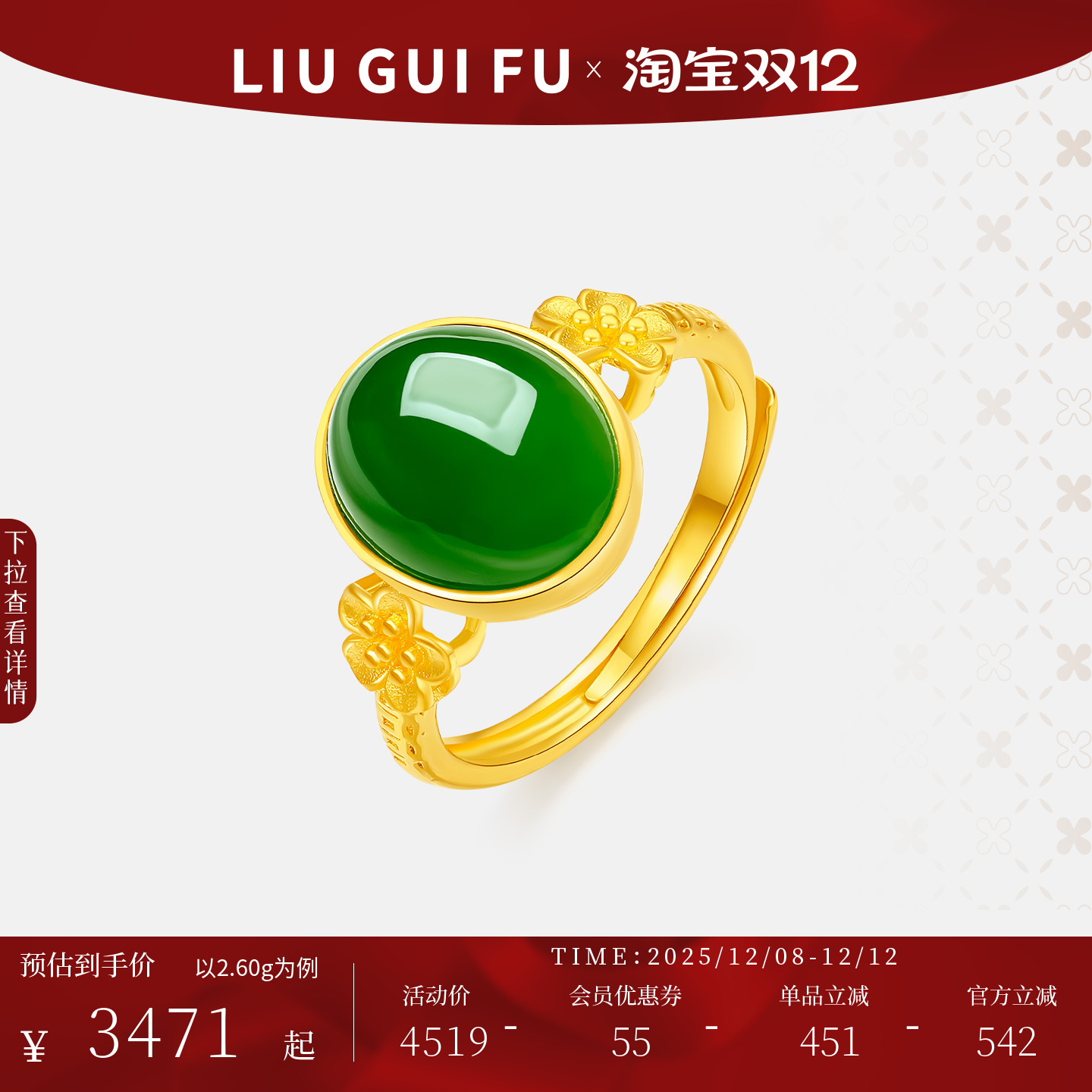 周六福旗舰店和田玉鸽子蛋戒指金镶玉女戒黄金圈碧玉指环圣诞礼物