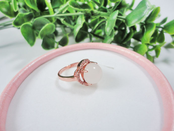 新疆昆仑玉和田白玉金镶玉戒指女款925银镀玫瑰金红18K金戒指环