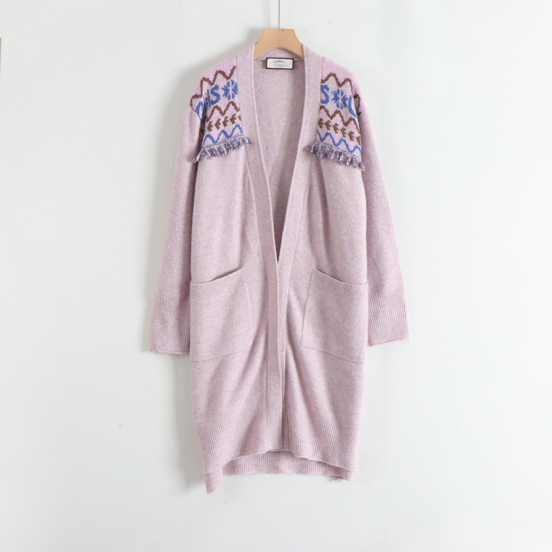 丽系列费尔岛复古风流苏开衫简约气质长款毛衣外套女25冬装新款