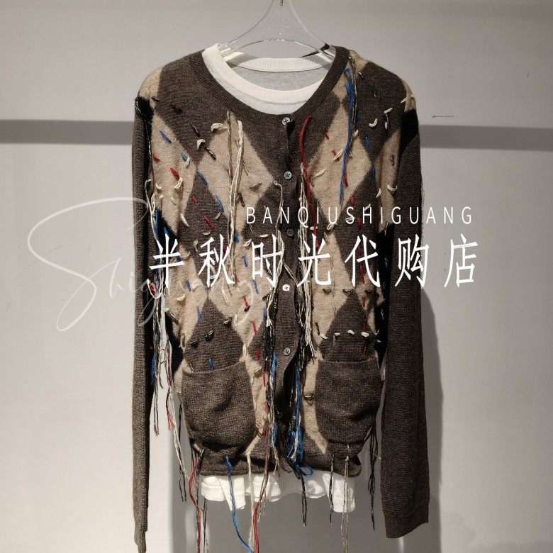 MICartsy王紫珊2025秋冬新款花色几何复古流苏开衫毛衣